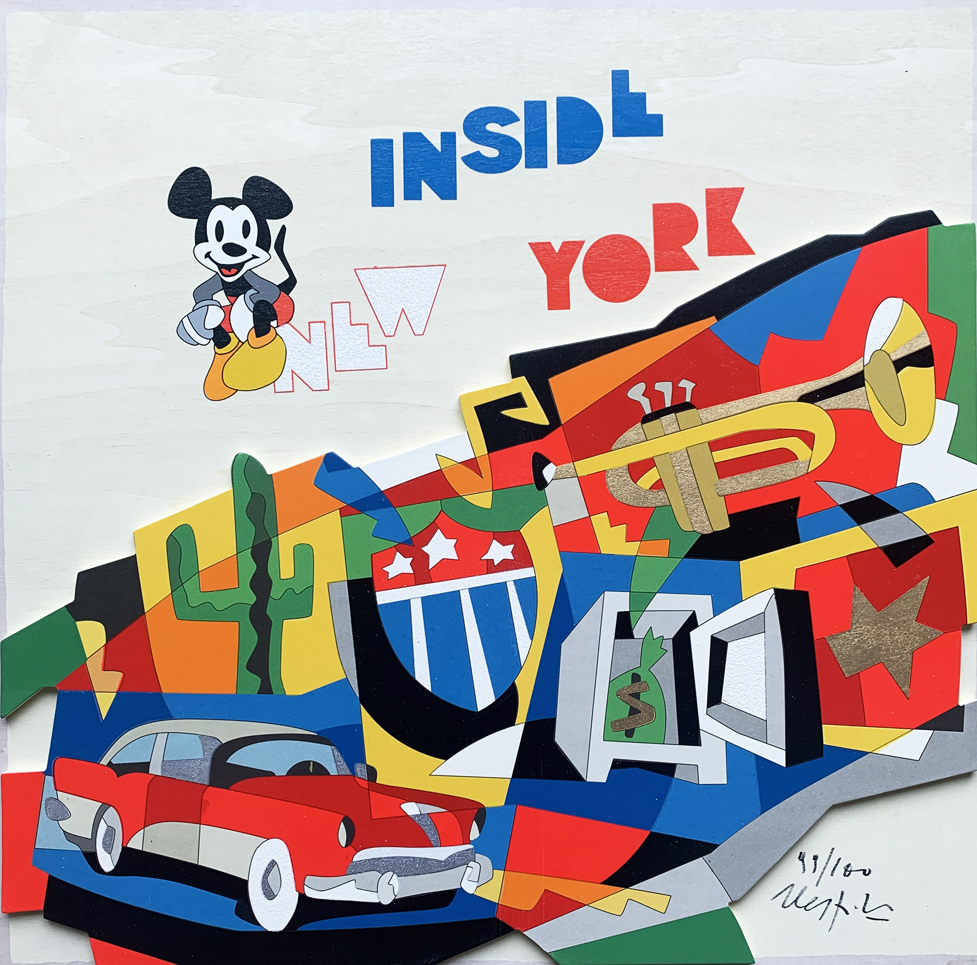 Serigrafia materica su cartoncino a 35 passaggi di colore con interventi in collage